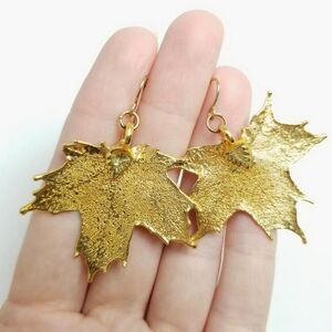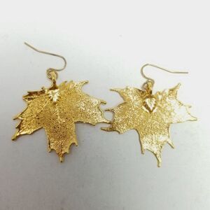 Vintage Gold Tone Leaf Dangle Earrings, Light Weight, Nature Boho Style