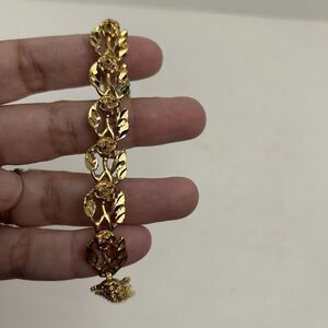 Vintage Gold Tone Leaf Floral/Roses Link 8 Bracelet good preowned condition