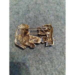 Roaring with vintage charm, this striking brooch captures the essence of the wild! A majestic lion takes center stage, accompanied by a graceful giraffe, a fierce tiger, and a playful pup, all rendered in a rich gold tone. The intricate detailing brings each animal to life, creating a captivating scene that's sure to turn heads. This unique piece adds a touch of adventure and sophistication to any outfit. Perfect for adding a touch of whimsy to a blazer lapel, securing a scarf with flair, or making a statement on a handbag.