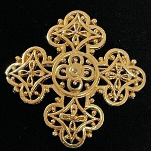 Vintage Gold Tone Lisner Brooch Maltese Filigree Cross Quatrefoil