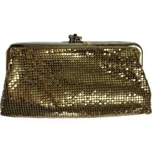 Vintage Gold Tone Mesh Chain Two Compartment Wallet Elegant Formal Small Clutch