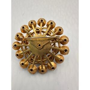 Add a touch of vintage elegance to your outfit with this stunning gold-tone brooch! Featuring iridescent Aurora Borealis rhinestones that catch the light beautifully, this pin will add a unique sparkle to any outfit.