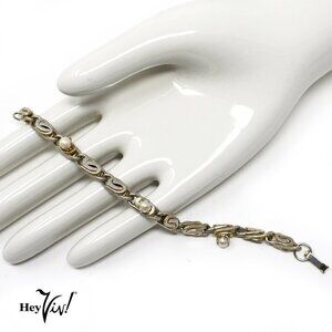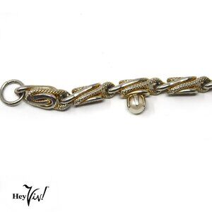 Vintage Gold Tone Metal Loop Bracelet w Prong Set Faux Pearls - 7" - Hey Viv