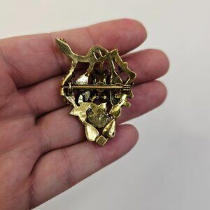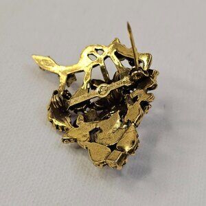Vintage Gold Tone Metal Teardrop Crescent Moon Rhinestone Brooch Leaf Pin