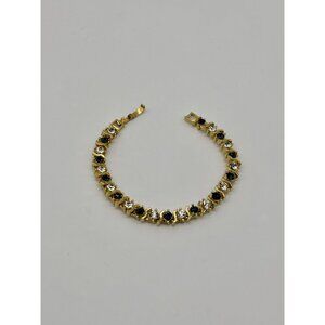 Vintage Gold Tone Metal and Faux Sapphire Faux Diamond Tennis Style Bracelet 80s