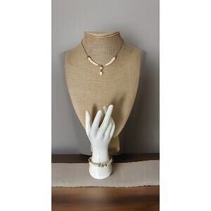 Vintage Gold Tone Mother Of Pearl Bar & Link Bracelet And Necklace. See Note