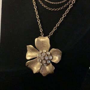 Vintage Gold Tone Multi Strand Necklace w/ Flower