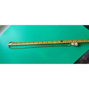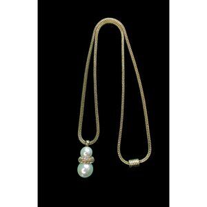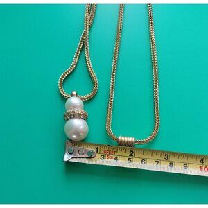 Vintage Gold Tone Necklace Magnetic Clasp Double Faux Pearl Pendant Long Jewelry