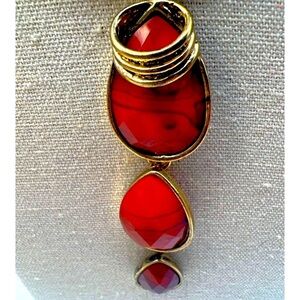 In the realm of vintage allure, this gold tone necklace stands out with its striking red acrylic drops. The chevron pattern on the necklace adds a touch of elegance and sophistication, evoking the charm of yesteryears while embracing modernity. It's an exquisite piece for those who appreciate timeless elegance.
