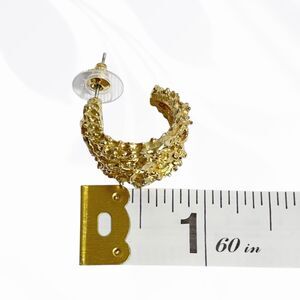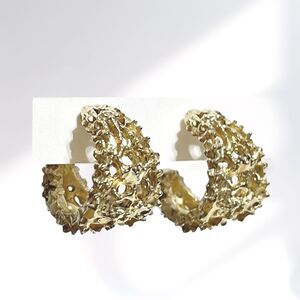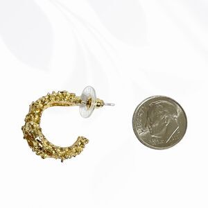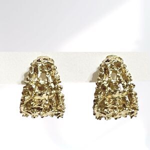 Vintage Gold Tone Nugget Hoop Earrings Textured Pierced Statement Chunky Jewelry