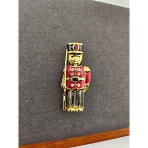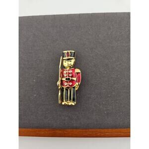 Vintage Gold Tone Nutcracker Toy Soldier Brooch Pin Christmas Holiday Season