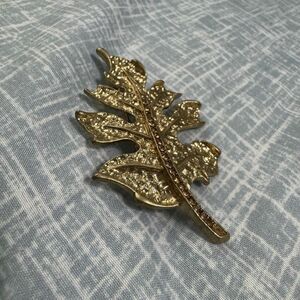 Vintage 1997 gold tone oak leaf brooch with amber rhinestones.