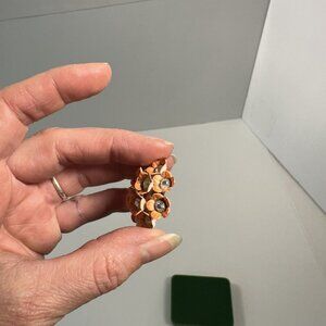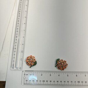 Vintage Gold Tone Orange Flower Rhinestone Floral Screw Back Earrings Retro