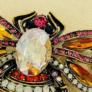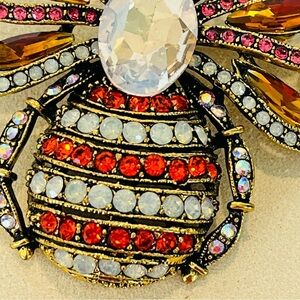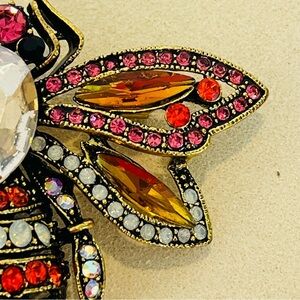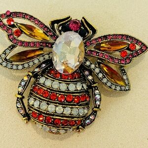Vintage Gold Tone Orange and Pink Crystal Bee Brooch