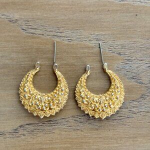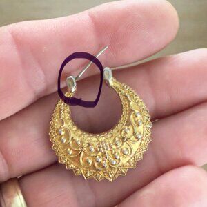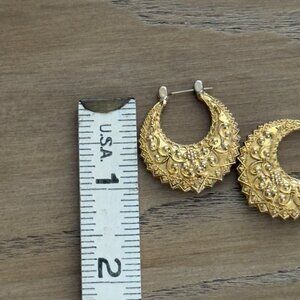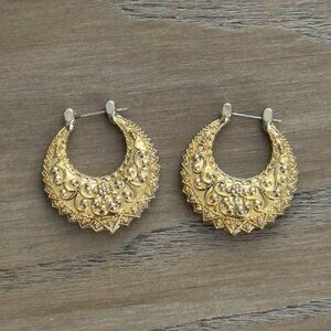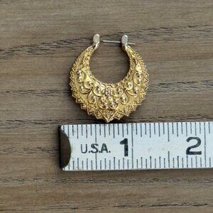 Vintage Gold Tone Ornate Filagree Hoop Earrings Intricate Victorian Revival READ