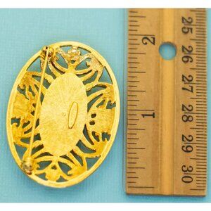 A beautiful gold tone oval -shaped with floral design made of Metal and Porcelain by Avon.