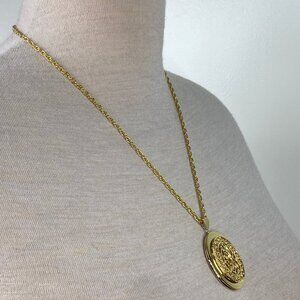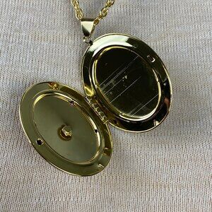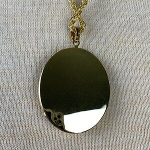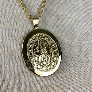 Vintage Gold Tone Oval Locket Pendant Necklace Scrollwork Design 23"