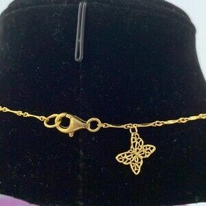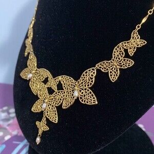 Gorgeous gold tone over sterling silver necklace with filigree butterflies in various sizes adorned with tiny pearls