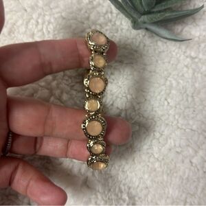 Vintage Gold Tone Peach Nude Rhinestones Stretch Bracelet