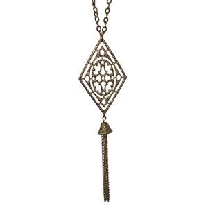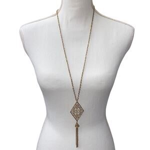 Vintage Gold Tone Pendant Tassel Necklace 22" Double Clasp Costume Jewelry Chain
