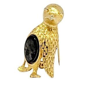 Vintage Gold Tone Penguin Brooch Pin With Black Glass Center Measures 1.25" H x .75" W Size: OS