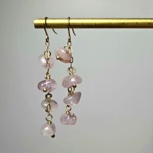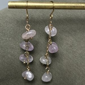 Vintage Gold Tone Pink Rose Quartz Beads Dangle Earrings