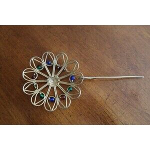 Vintage Gold Tone Ponytail Cage Barette Hair Clip Slide Pin Metal Large 4" Dia.