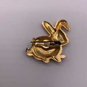 Vintage Gold Tone Rabbit Pin Brooch With Red & White Accents