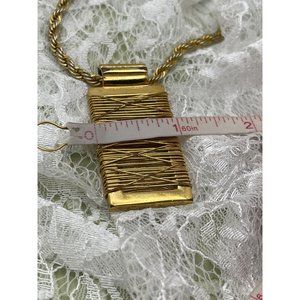 Vintage Gold Tone Rectangle Wire Pendant Spiral Chain Necklace