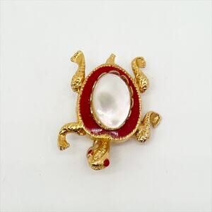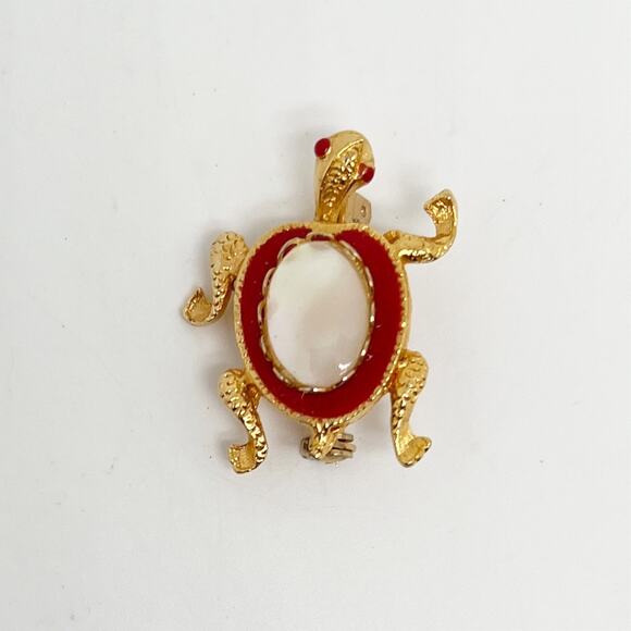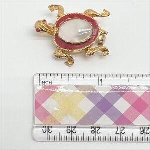 Vintage Gold Tone, Red and White Turtle Brooch Pin