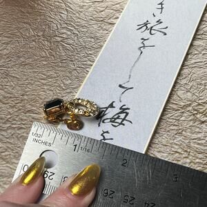 Add a touch of vintage glamour to your jewelry collection with these stunning gold tone clip-on earrings. These earrings feature dazzling rhinestones and elegant black stones, creating a sophisticated and timeless look. Perfect for any occasion, these clip-on earrings are comfortable to wear and will add a touch of sparkle to your outfit. The earrings are signed by the maker for authenticity. Don't miss out on this exquisite piece of vintage jewelry!