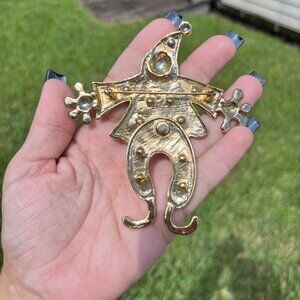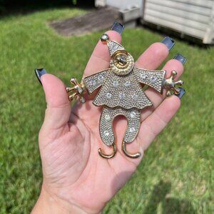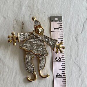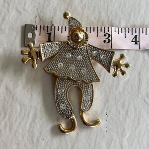 Vintage Gold Tone & Rhinestone Dancing Clown Pin Brooch With Movable Legs
