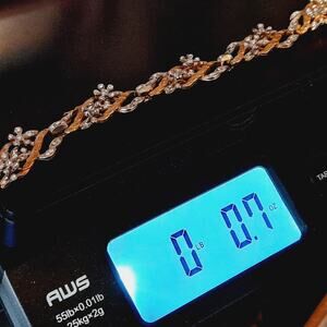 Note: There are at least 5 tiny rhinestones missing which are difficult to see without magnification because of the silver lining behind the rhinestone. So this bracelet is beautiful and sold as is.