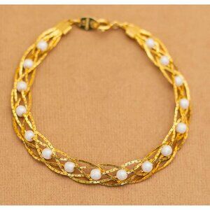 Vintage Gold Tone Roots Faux Pearls Bracelet 7 1/2 inch by Avon - Y15
