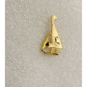 Vintage Gold Tone Sailboat Tie Lapel Brooch Pin Nautical New