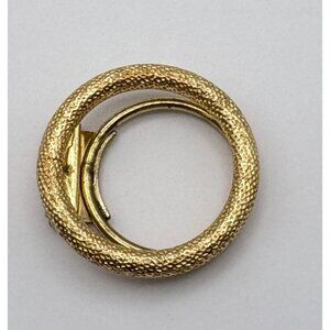 A vintage gold-tone scarf clip featuring an elegant textured circular design. Made in Western Germany, it adds sophistication to accessories.