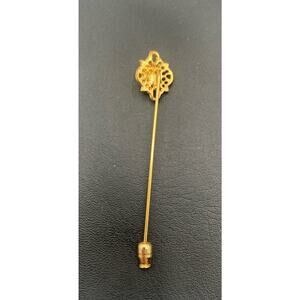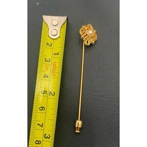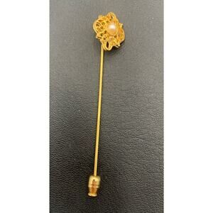 Vintage Gold Tone Scroll Work And Faux Pearl Stick Pin