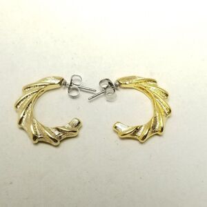 Vintage Gold Tone Small Huggie Hoop Stud Earrings, Unique Spiral Design, Estate