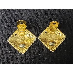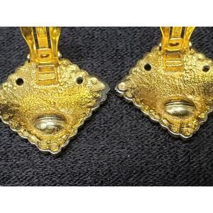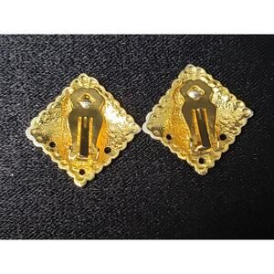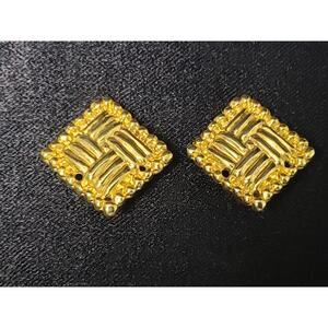 Vintage Gold Tone Square Criss Cross Design Clip on Earrings. Preloved condition, does have some fading on the back as shown.
