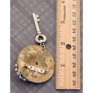 Vintage Gold Tone Steampunk Clock Brooch G27