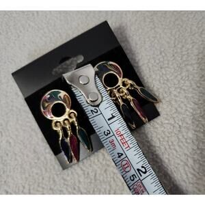 Vintage Gold Tone Swirl Dream Catcher Earrings Acrylic Maroon Dangle