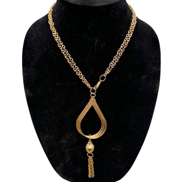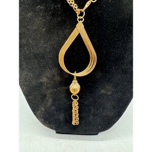 Vintage Gold Tone Teardrop tassel Pendant Necklace clasp 16" READ