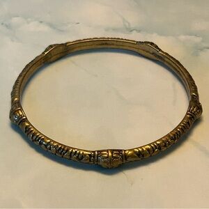 Elegant vintage gold tone bangle with textured design. Perfect for any occasion.