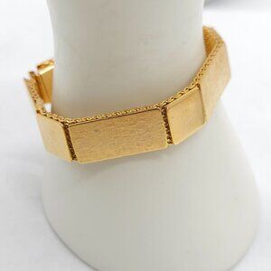 Vintage Gold Tone Textured Rectangular Link Bracelet With Fold Over Clasp