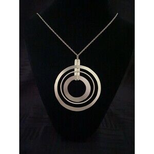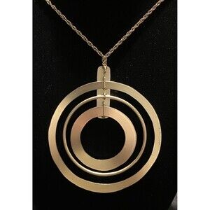 Vintage Gold Tone Triple Circle Long Necklace 36"