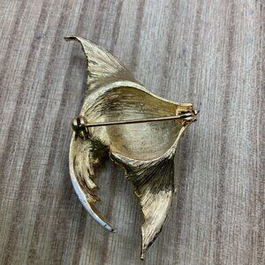Vintage Gold Tone White Enamel Tropical Fish Pin Brooch