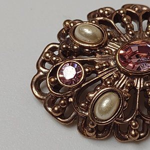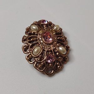 Vintage Gold Tone With Pink Stones Oval Shaped Brooch
