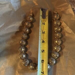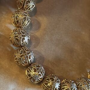 Vintage Gold Tone cut out beads necklace - hook closure- very pretty