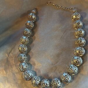 Vintage Gold Tone cut out beads necklace - hook closure- very pretty- Great condition