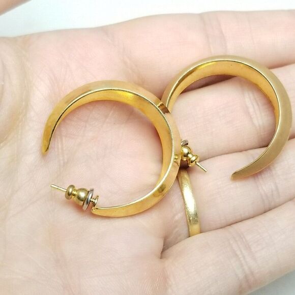 Vintage Gold Tone 1 Inch Hoop Earrings, Pointed Edge Design, Classic Style